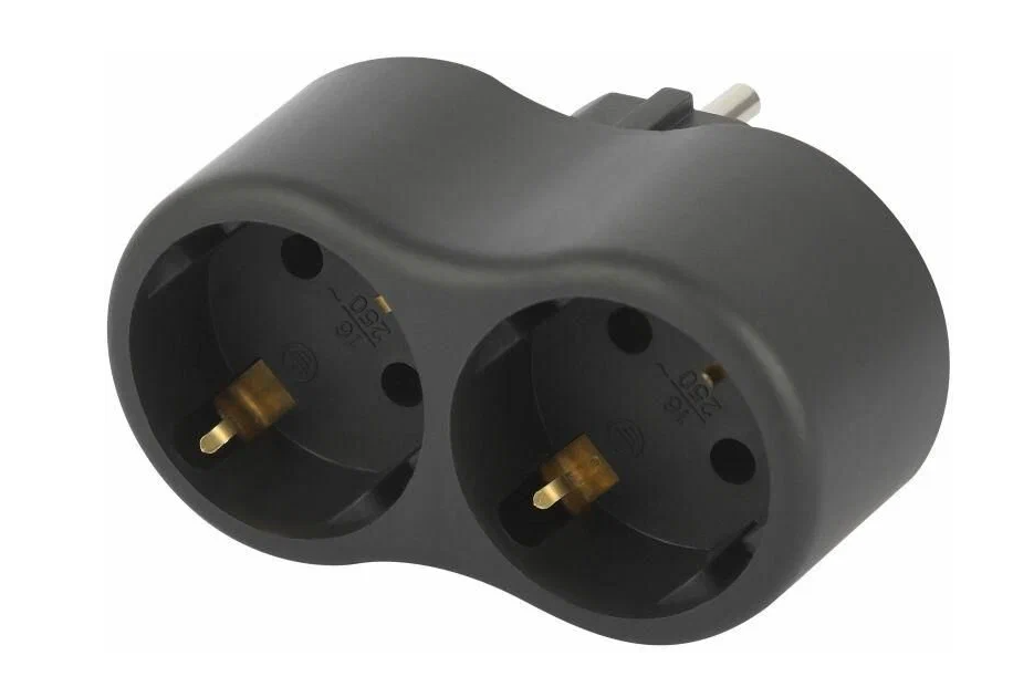 Разветвитель имеет две розетки, каждая из которых имеет заземление и рассчитана на нагрузку до 16 Ампер.
