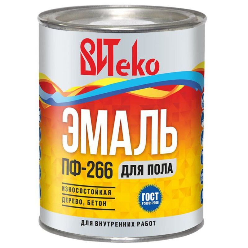 Половая краска ПФ-266 формирует плотное покрытие и устраняет недостатки поверхности за счёт высокой степени укрывистости, придавая ей блестящий вид. Также, материал характеризуется повышенной стойкостью к воздействию влаги и моющей бытовой химии, светостойкостью.