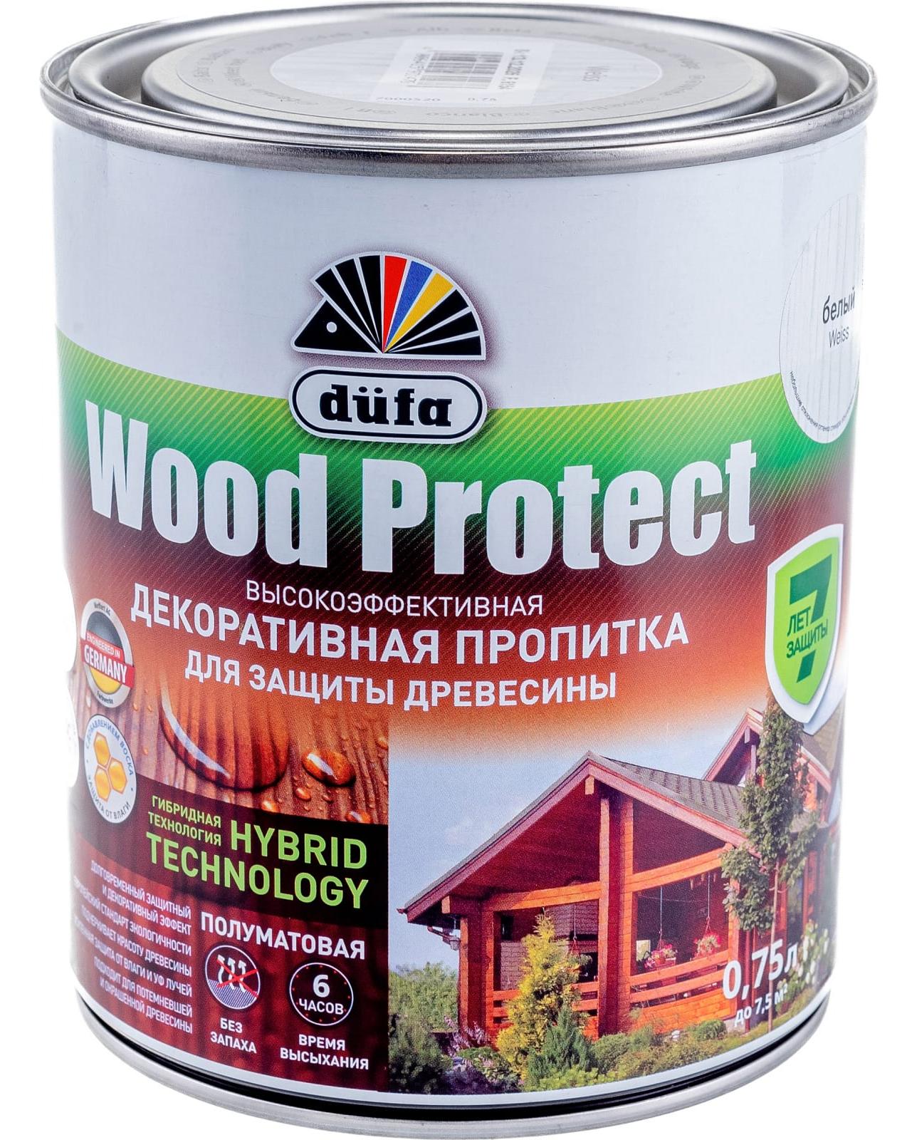 - Dufa Wood Protect белый 750 мл подходит для ремонта уже обработанных поверхностей.