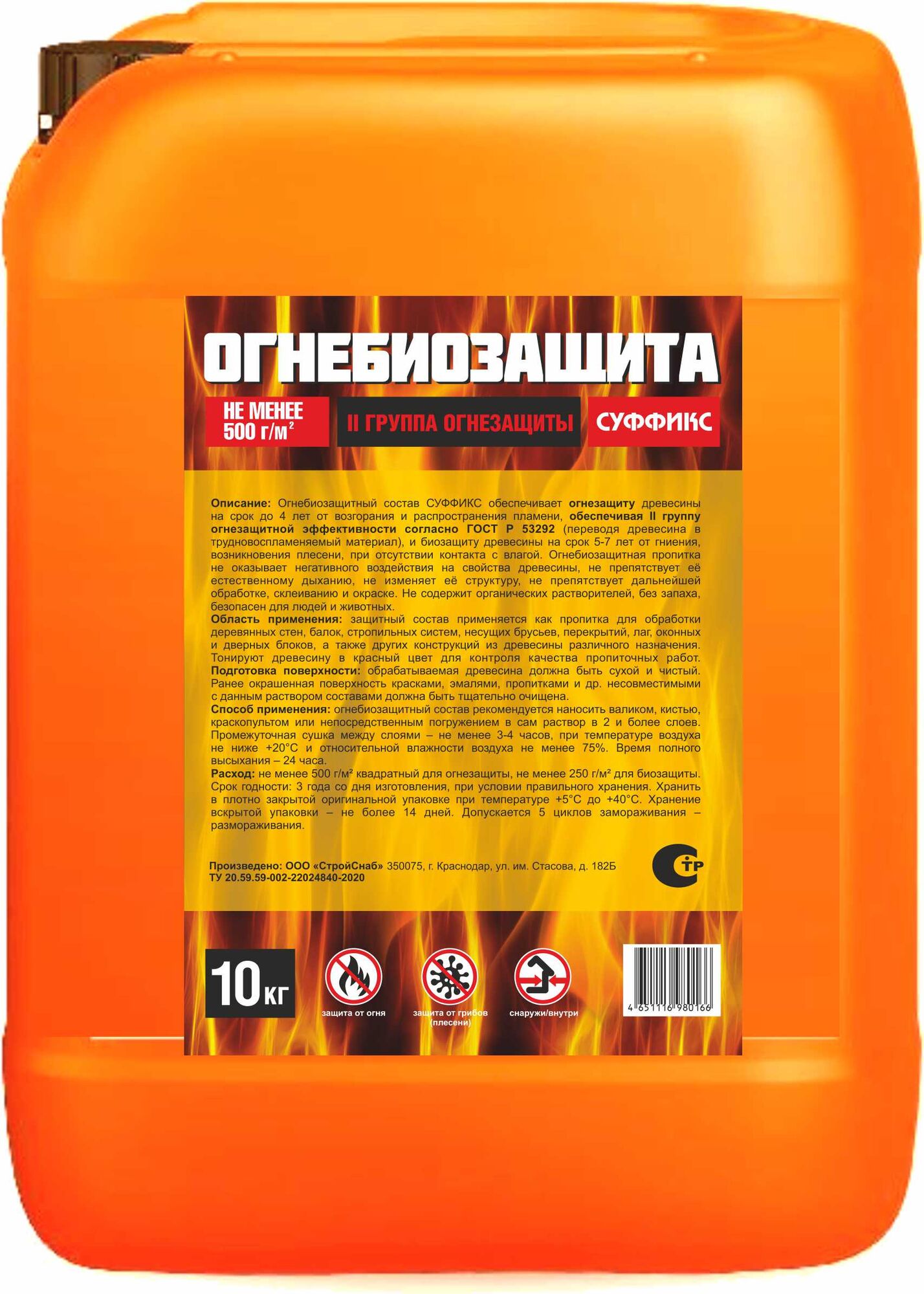 Защитный состав применяется как пропитка для обработки деревянных стен, балок, стропильных систем, несущих брусьев, перекрытий, лаг, оконных и дверных блоков, а также других конструкций из древесины различного назначения. Тонирует древесину в красный цвет для контроля качества пропиточных работ.